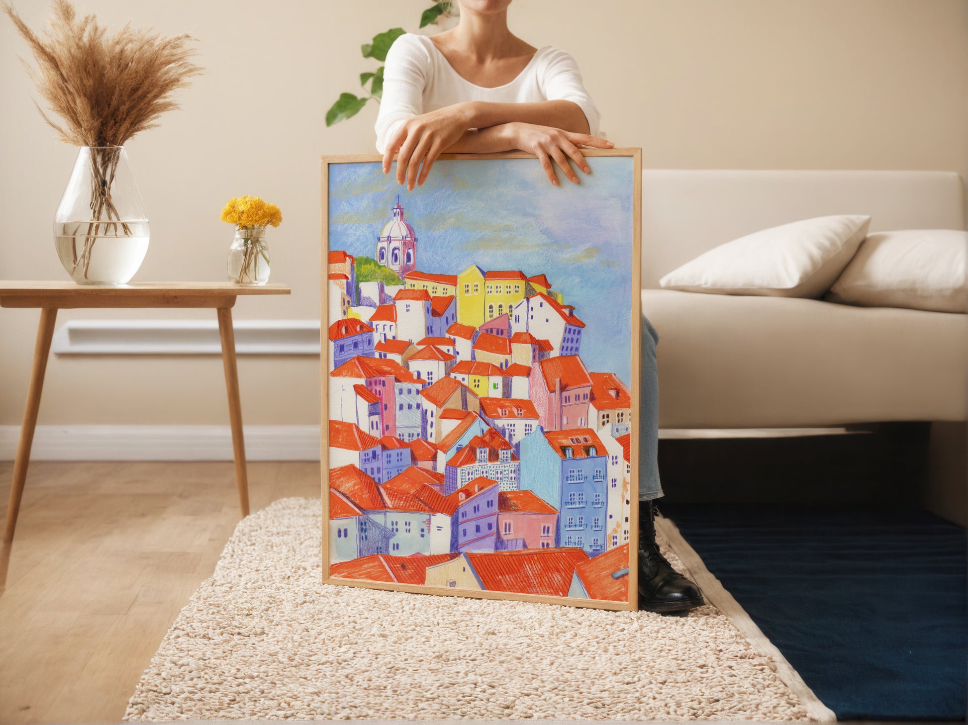 Lisbon Rooftops Art Print: Alfama Illustration, Portugal Travel Poster