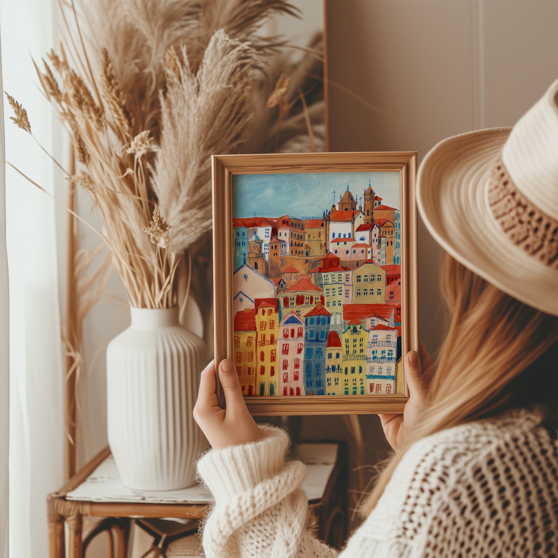 Porto Portugal Art Print: Hand-Drawn Gouache Cityscape Poster